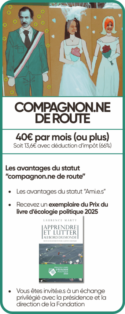 Pour mener à bien ses missions, la Fondation de l’Écologie Politique a besoin de vous. En faisant un don régulier, vous nous offrez de la visibilité financière et de la capacité à agir dans une période où l’incertitude règne.