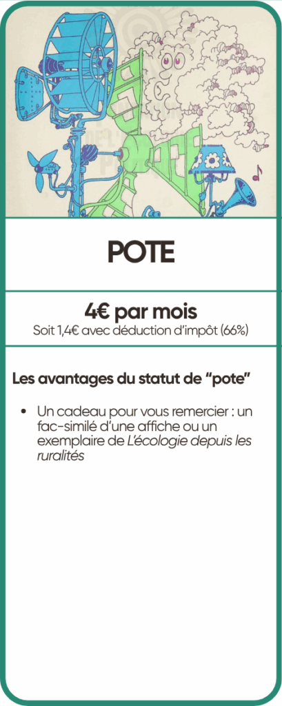 Notre objectif, rassembler au moins 1000 potes, ami.e.s ou compagnon.ne.s de de route pour produire plus d’analyses et préserver les archives de l’écologie.